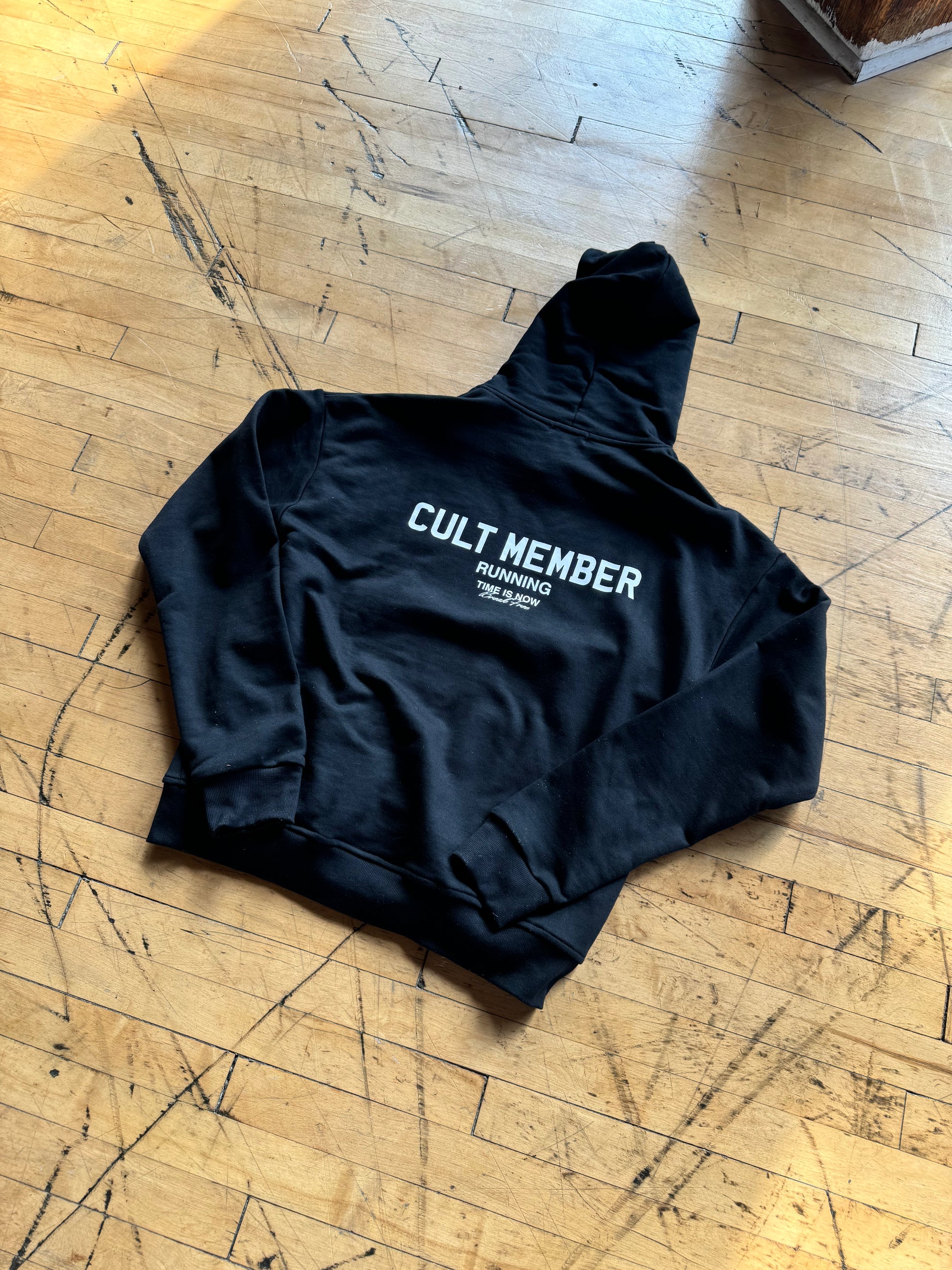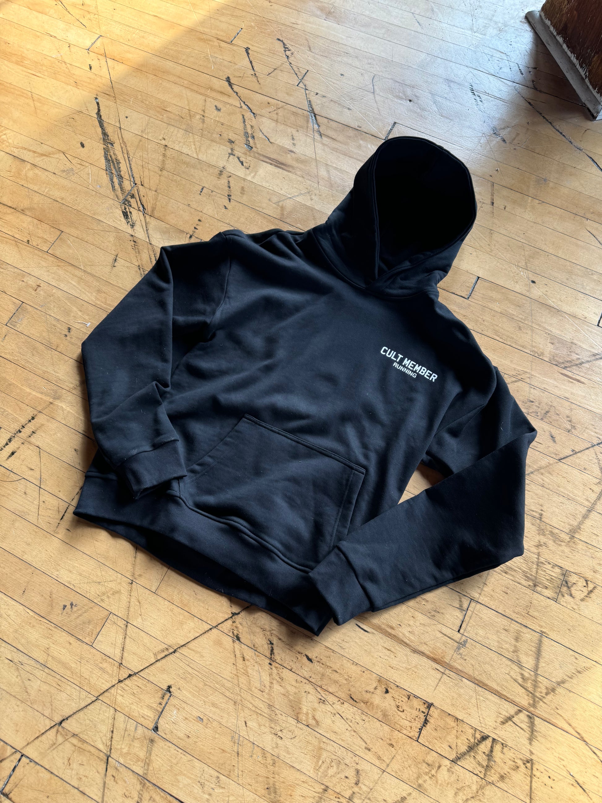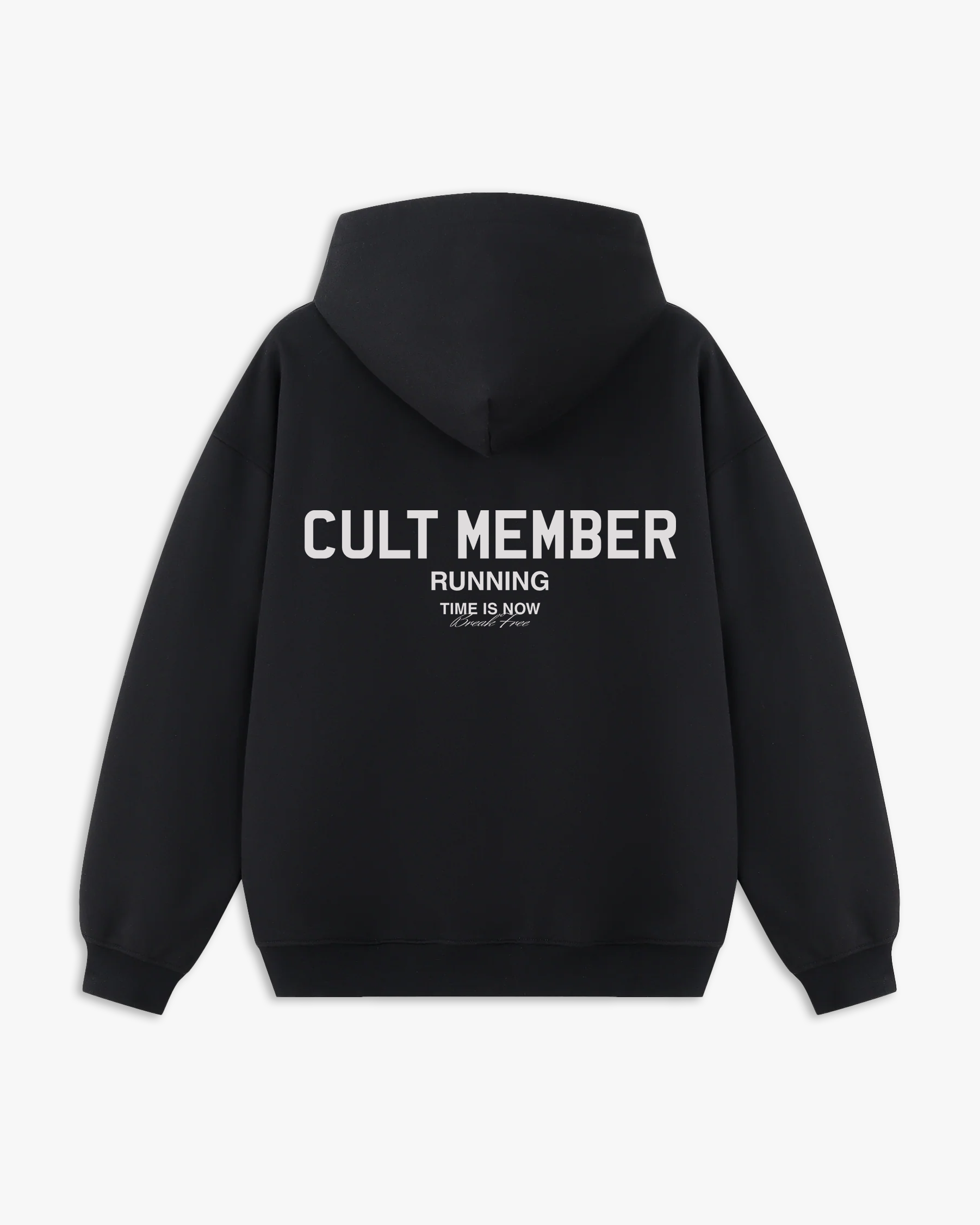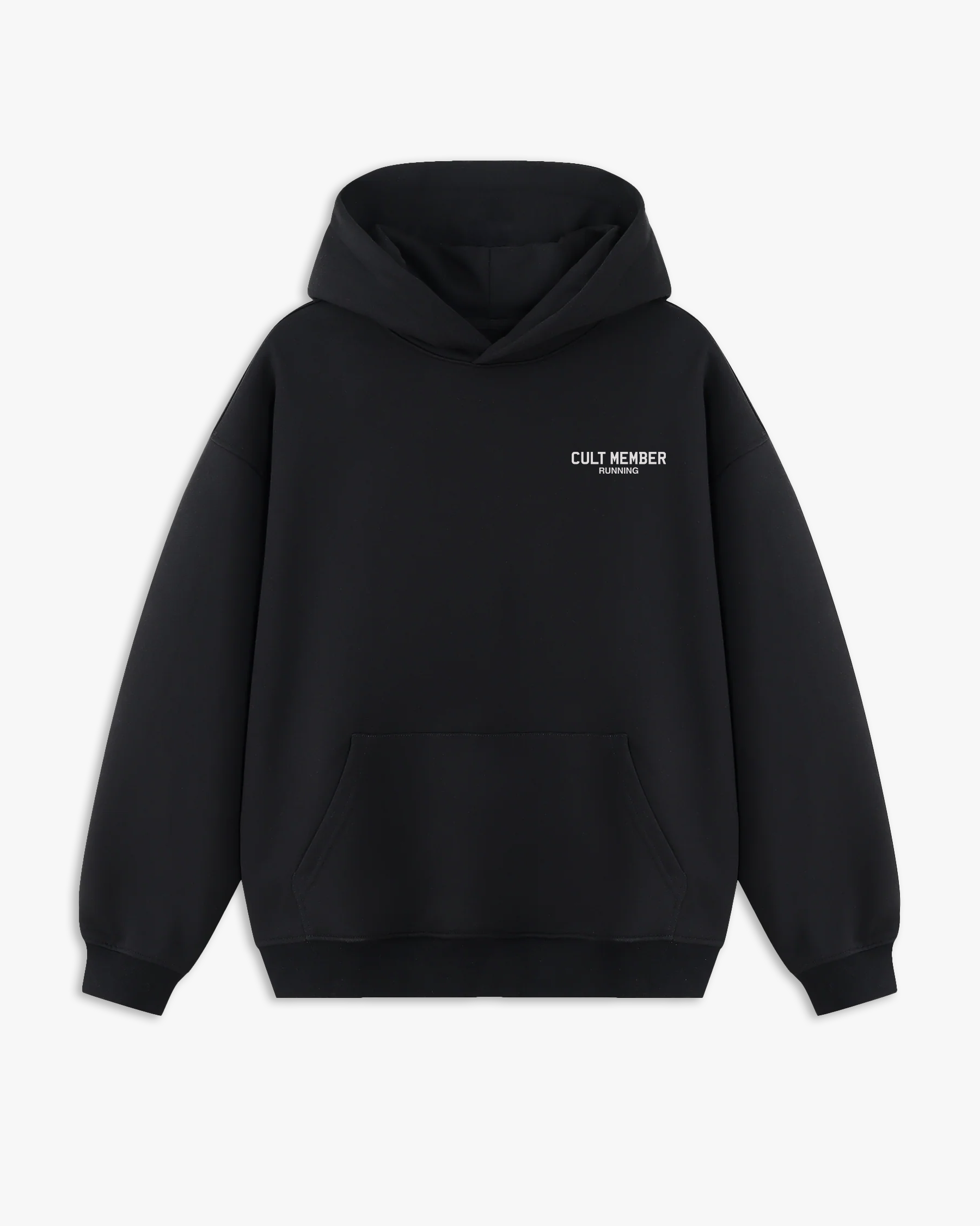 Jet Black hoodie with an oversized fit, crafted from a heavy weight jersey cotton. Super soft, pre-shrunk and piece dyed for the ultimate jersey. Ribbed hem & cuffs. Cult member print to the chest and back.