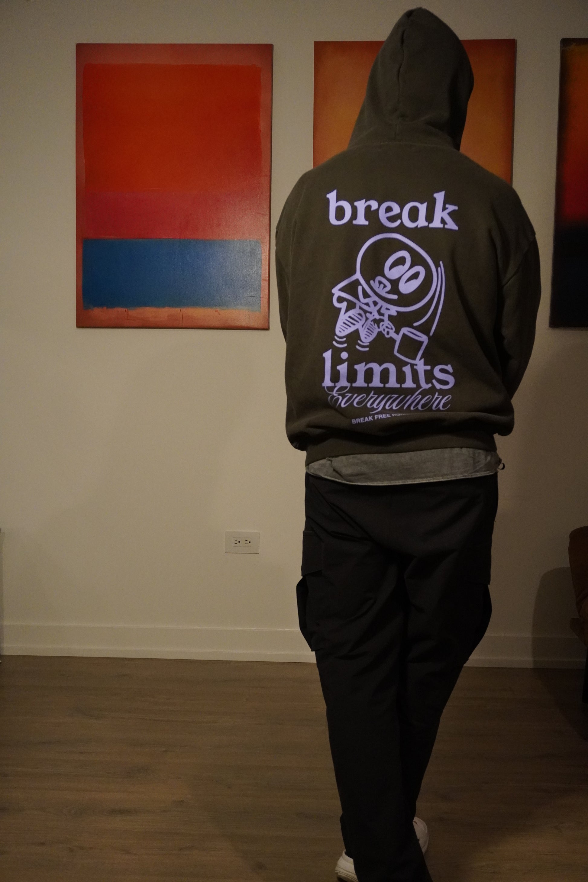Faded black that's lived through something. Purple graphics that bloom in the shadows. This isn't about standing out in a crowd—it's about the people who notice when everyone else looks away.