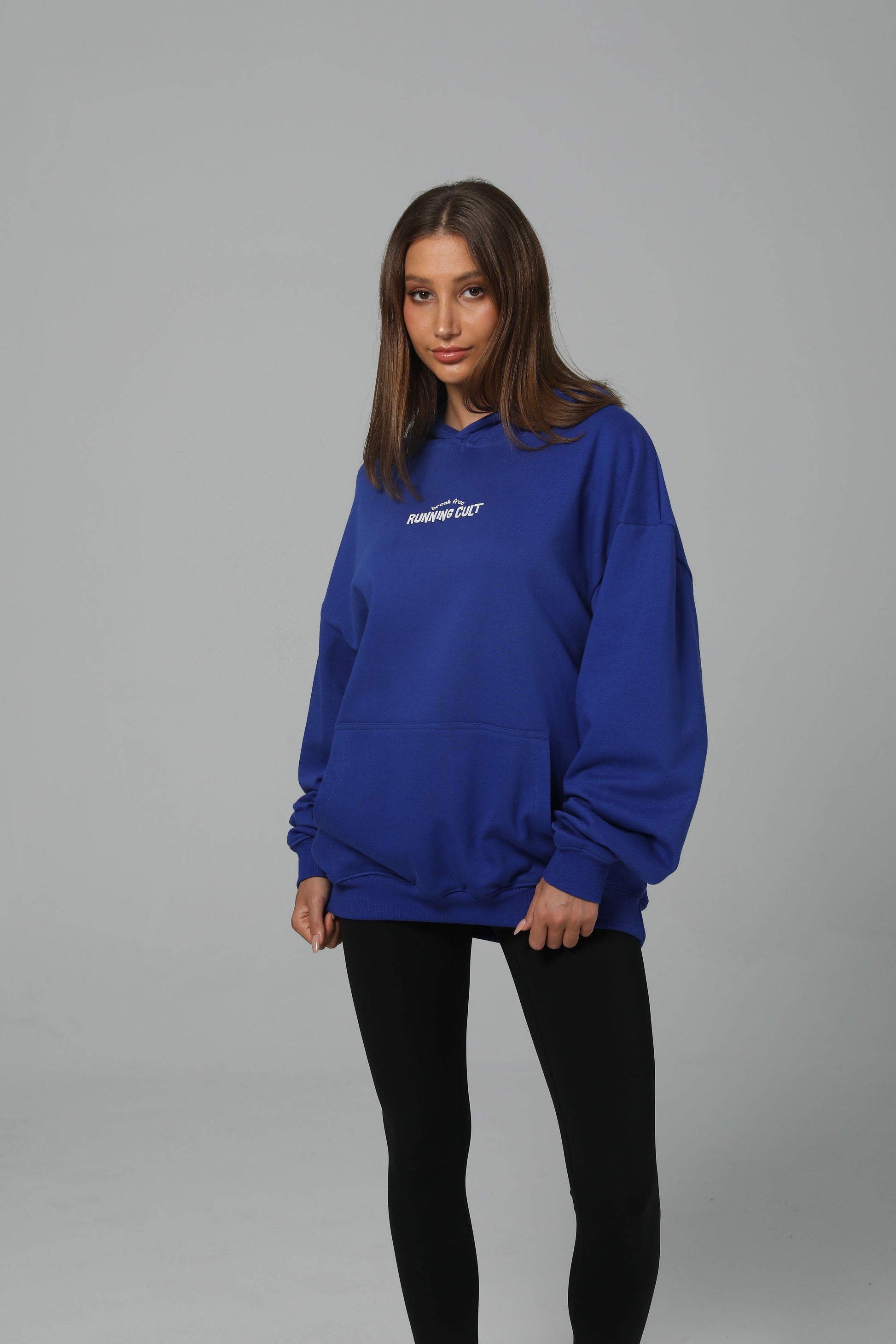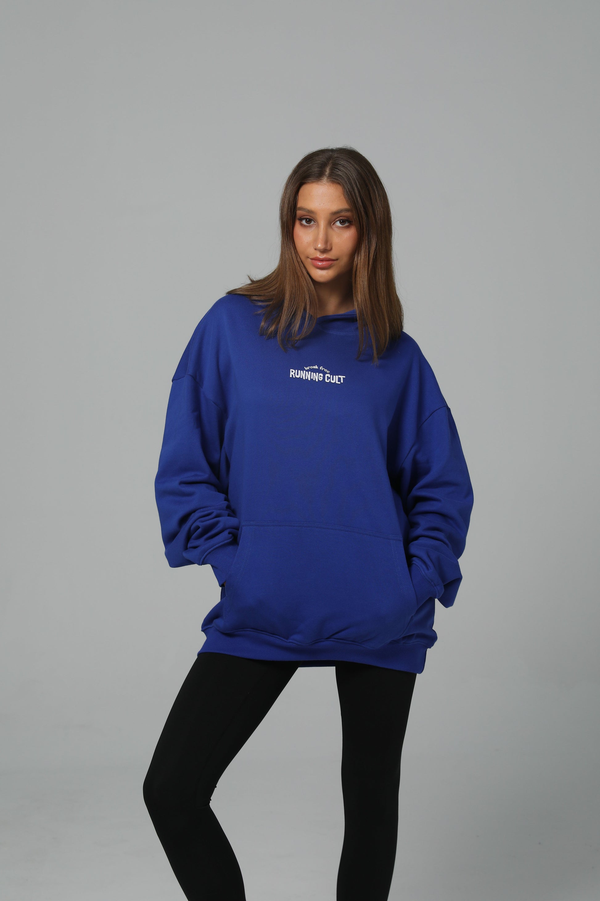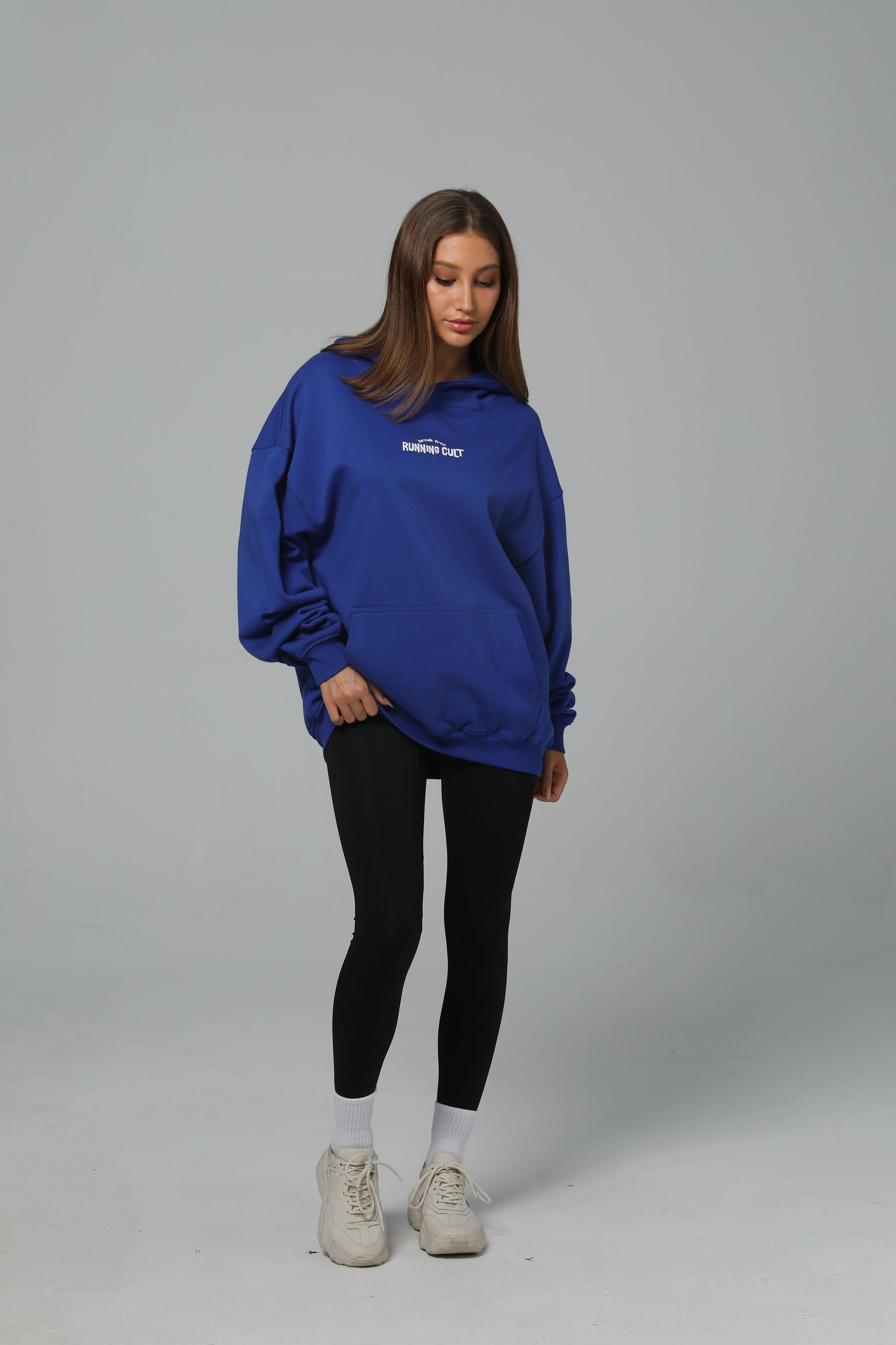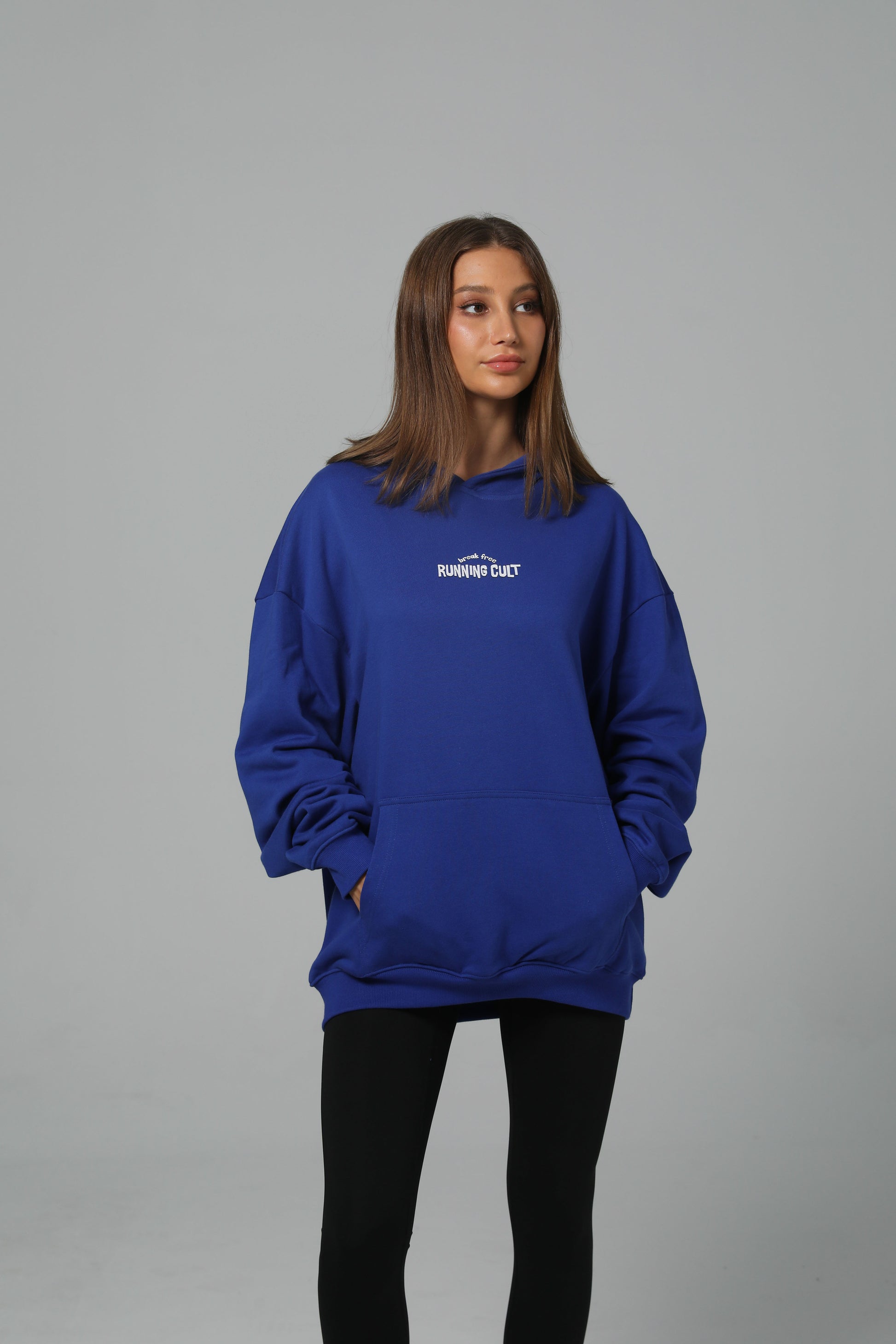Royal Blue hoodie with an oversized fit, crafted from a medium weight jersey cotton. Super soft, pre-shrunk and piece dyed for the ultimate jersey. Ribbed hem & cuffs. "Post Long Run Hoodie" print to the back.
