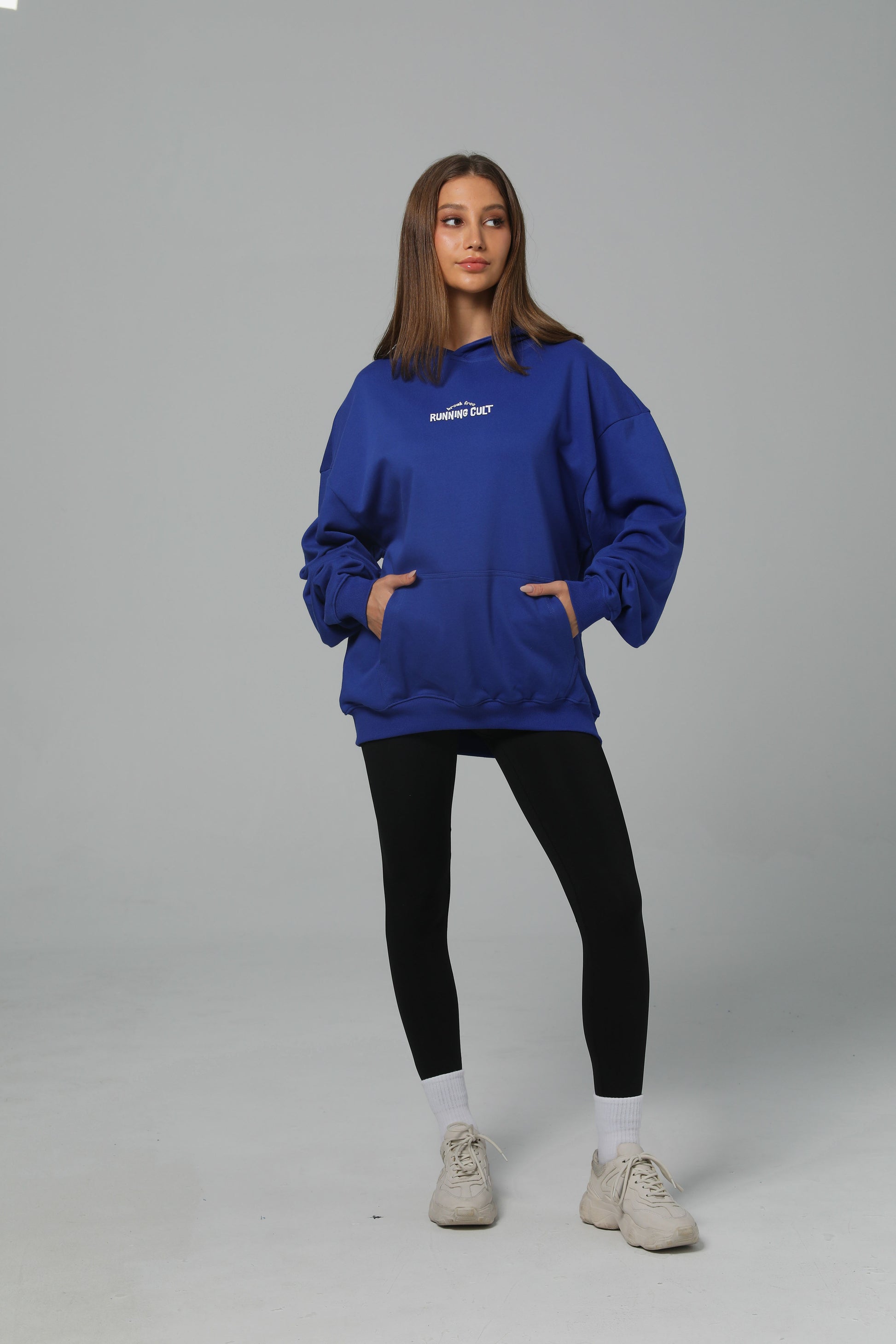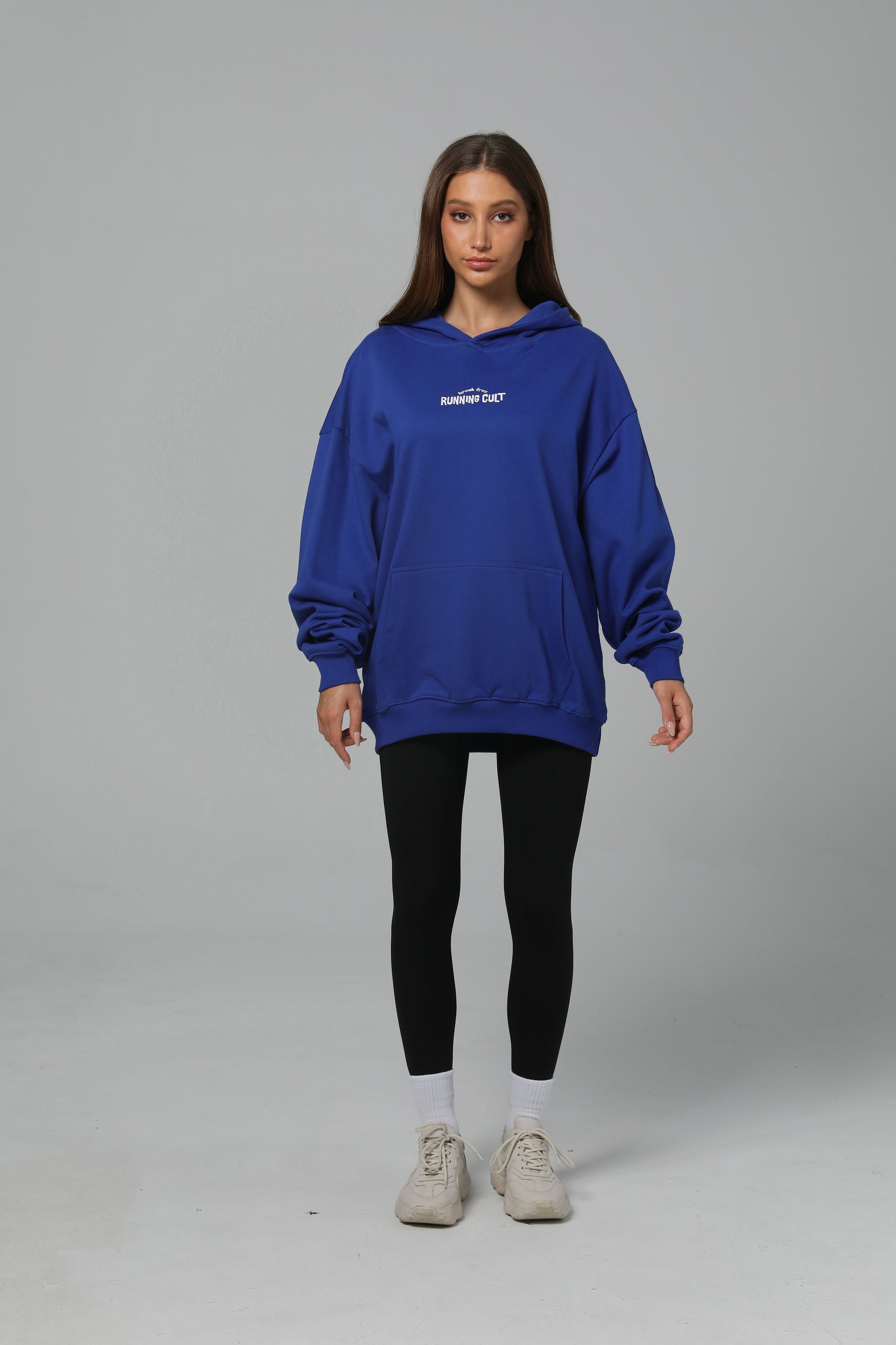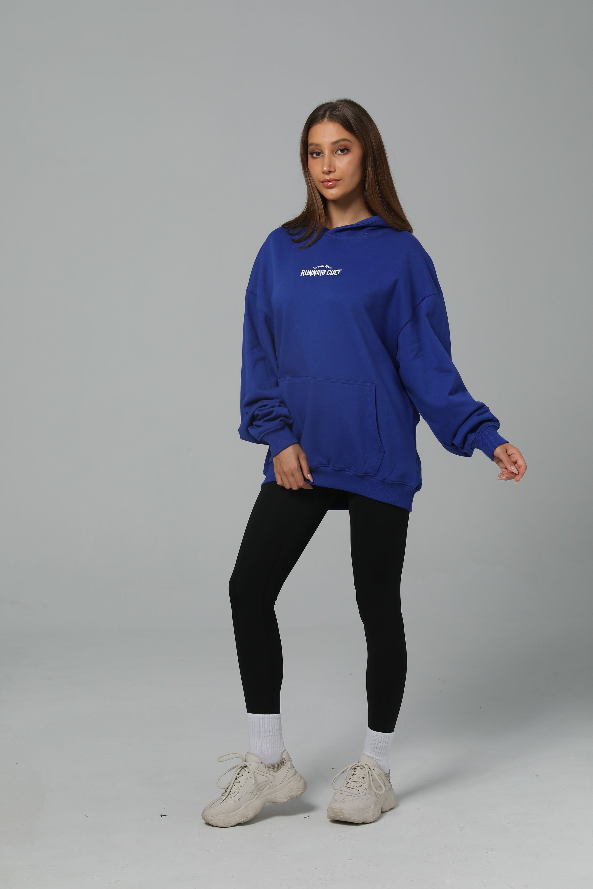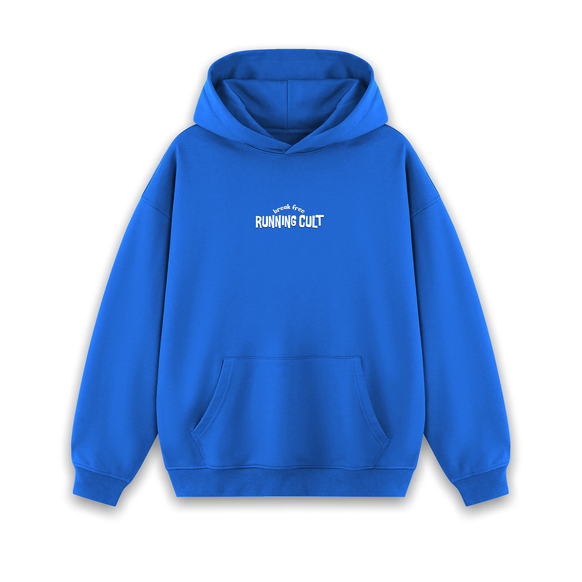 Royal Blue hoodie with an oversized fit, crafted from a medium weight jersey cotton. Super soft, pre-shrunk and piece dyed for the ultimate jersey. Ribbed hem & cuffs. "Post Long Run Hoodie" print to the back.