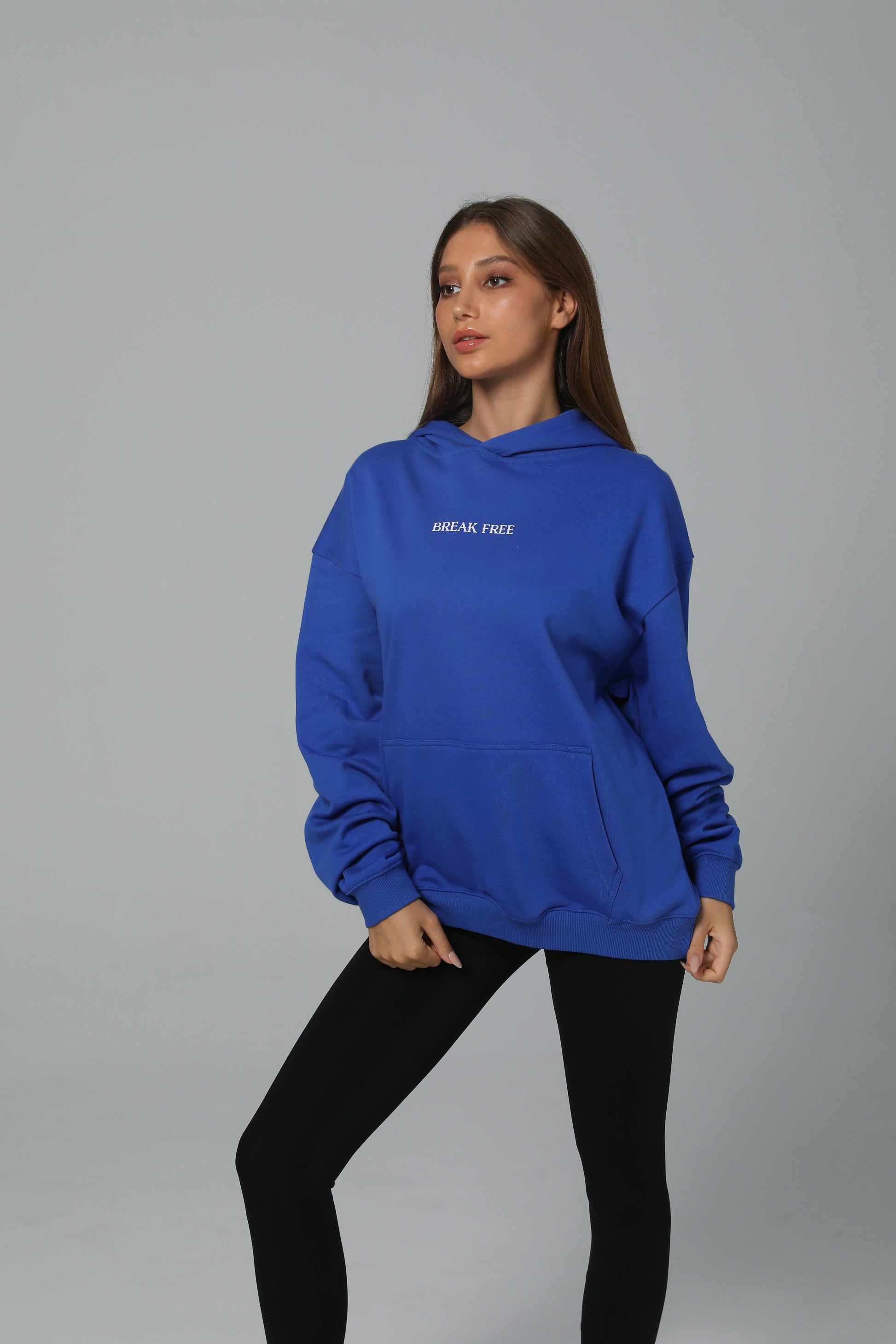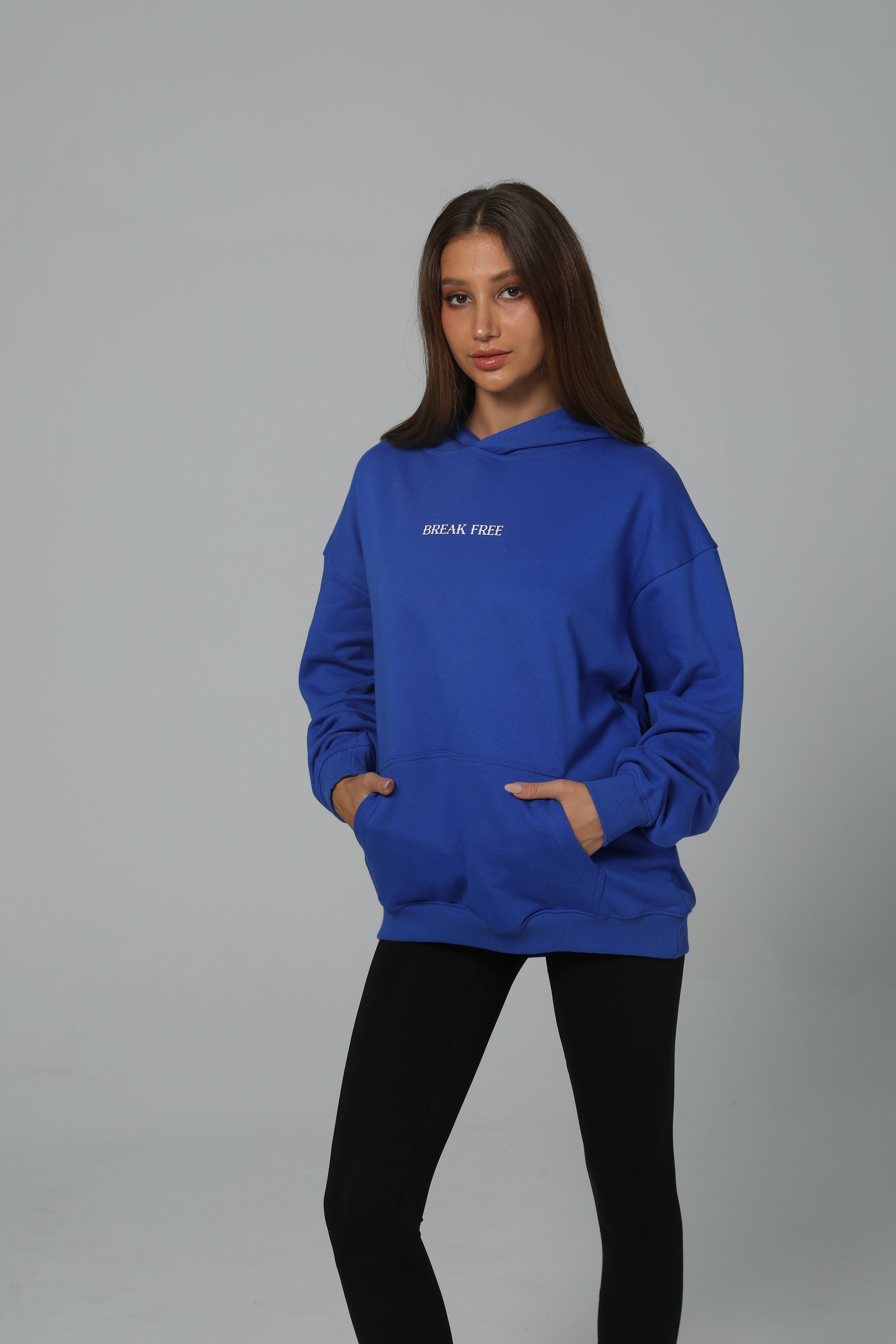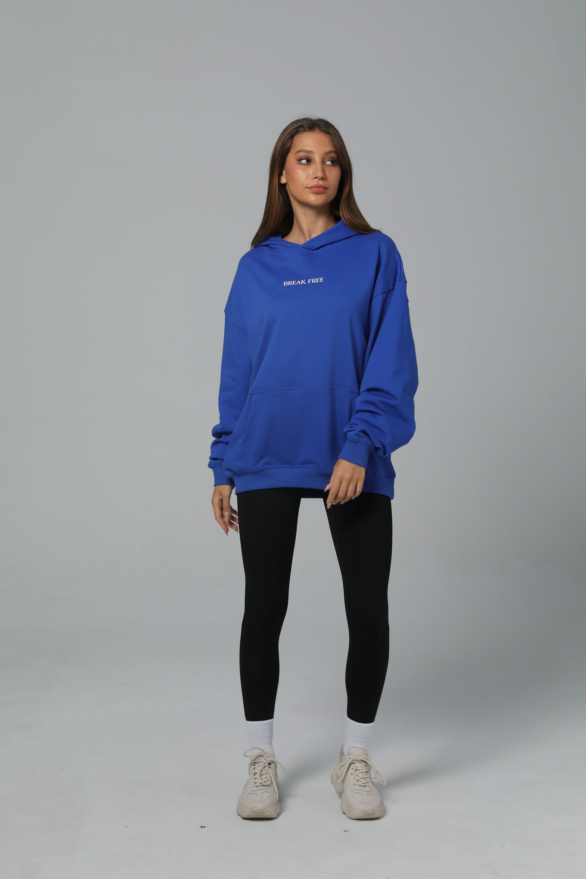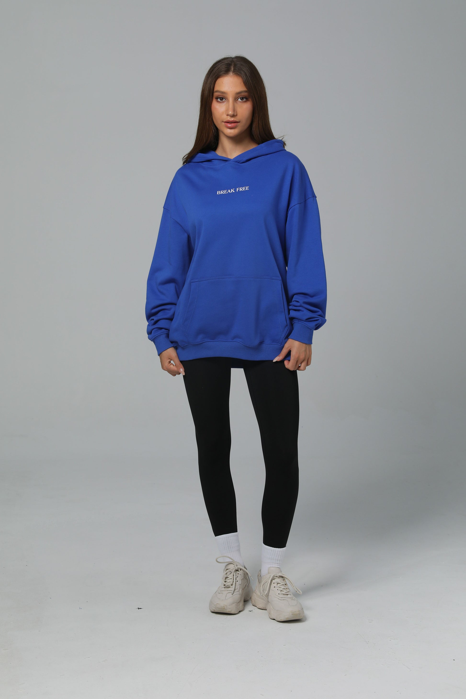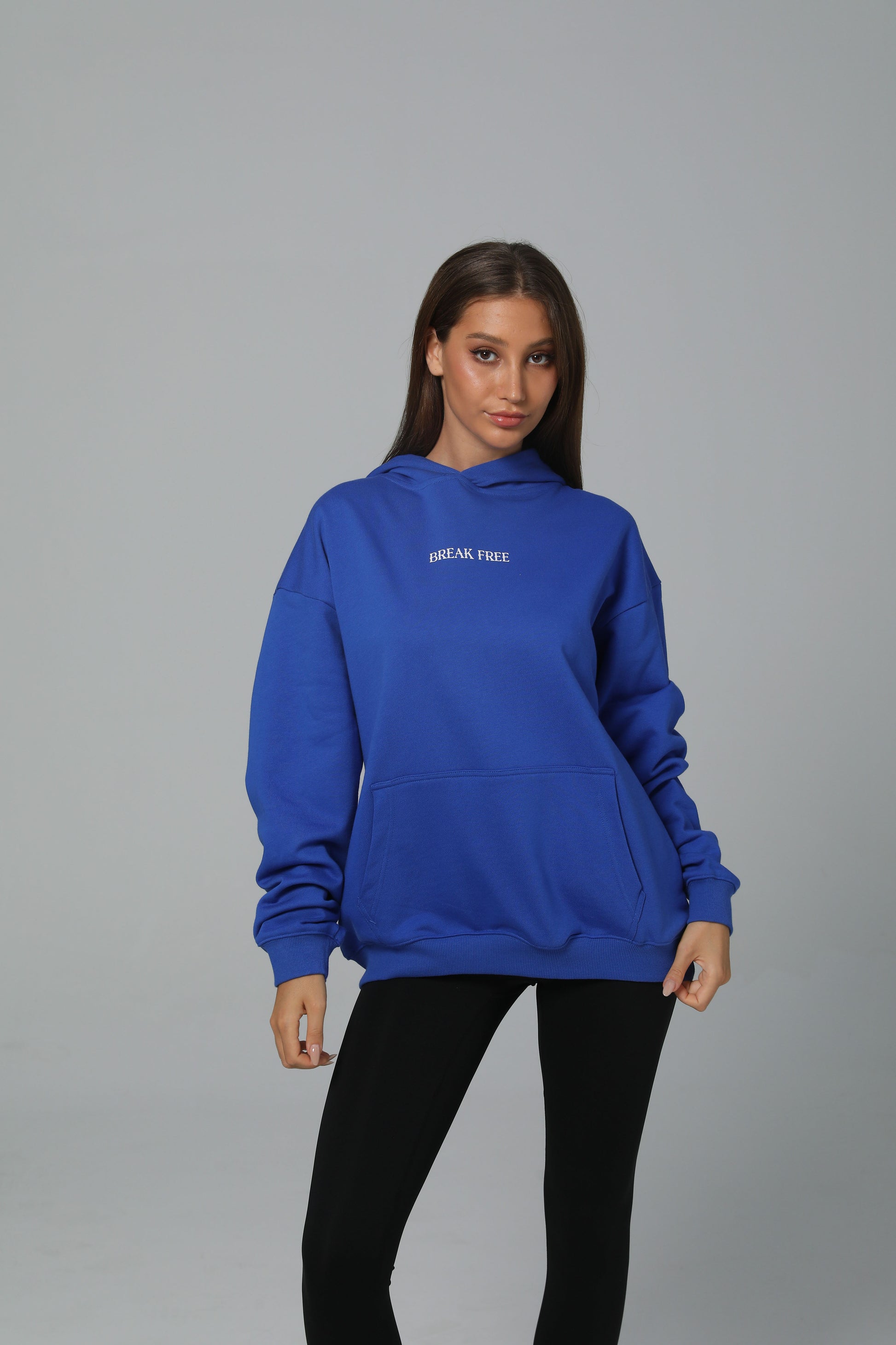 Royal Blue hoodie with an oversized fit, crafted from a heavy weight jersey cotton. Super soft, pre-shrunk and piece dyed for the ultimate jersey. Ribbed hem & cuffs. "Too Busy Marathon-ing" print to the back.